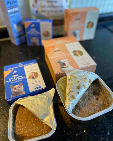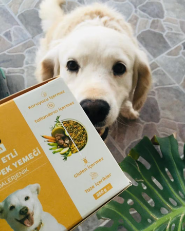 Tamamen insan standardında ve taze içeriklerle hazırlanan evcil hayvan yemeği.