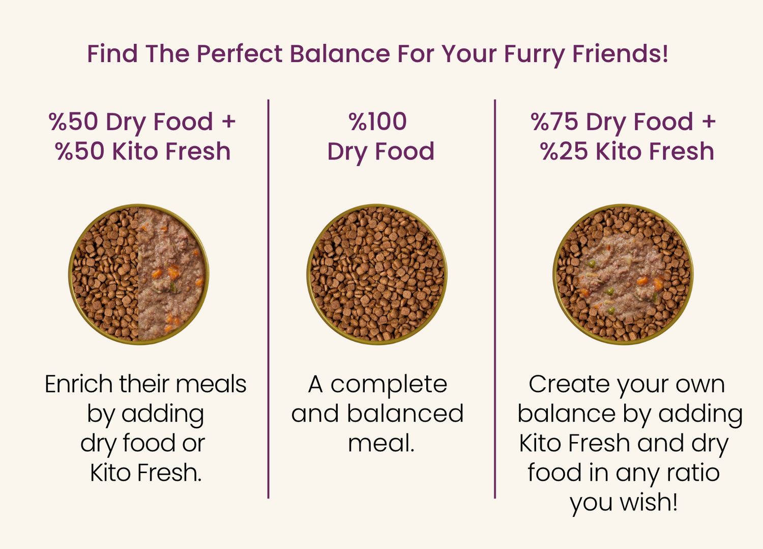 Prepared with the fresh meat injection system (FMIS), Kito food increases the digestibility of natural lamb meat to 99% and maximizes its taste, freshness and nutrition.