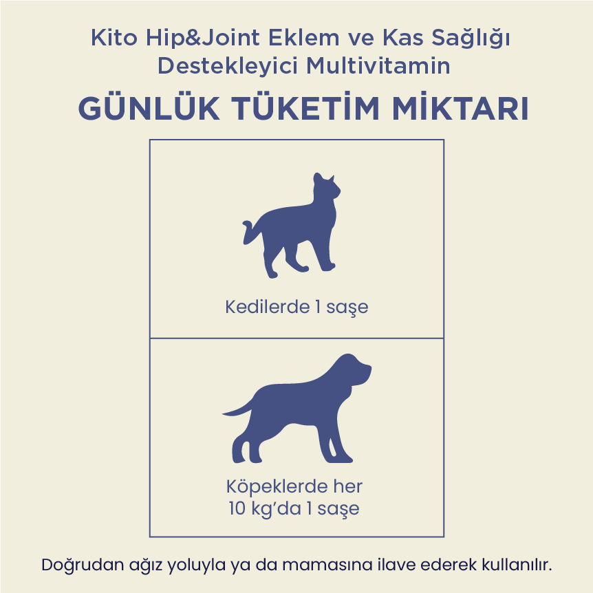 Kullanım Şekli/Directions for use: 6 aylığa kadar yavru kediler için günlük 1 ml, 6 aylıktan büyük kediler için günlük 2 ml kullanılması tavsiye edilir. Saşe içerisindeki karışımı ölçek şişesine boşaltınız. Ardından ölçek şişesinde işaretli yere kadar kaynatılıp soğutulmuş su veya içme suyu ilave ediniz. Ardından 2 dk. boyunca kuvvetlice çalkalayınız. İçeriğindeki vitamin ve mineraller tamamen çözündükten sonra kullanıma hazır hale gelecektir. Ambalaj içerisinden çıkan ölçekli damlalıkla kedinize direkt ağızdan verebilirsiniz. Tercihe bağlı olarak mama veya suyuna da katarak verebilirsiniz. Hazırlanmış ürünü 1 ay boyunca buzdolabında muhafaza edebilirsiniz. HER KULLANIMDAN ÖNCE İYİCE ÇALKALAYINIZ.