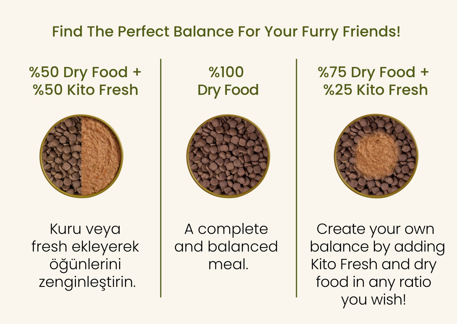 Kito knows very well that our adult paw friends need a balanced and nutritious food and prepares the best food produced from lambs growing in the natural environment of Karkas Farm. Feeding your dog with new generation food that has high nutritional value and is delicious is very important for its health.