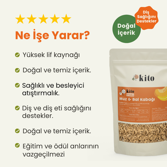 Treats are not a primary food, but a supportive supplementary food used at certain intervals. If consumed excessively, it may lead to weight problems. Therefore, when rewarding your little friend with Kito Cookie, you should portion it according to its diet and adjust the correct amount. ito Cookie is a type of snack that supports every learning process of your little friend, from toilet training to command training.