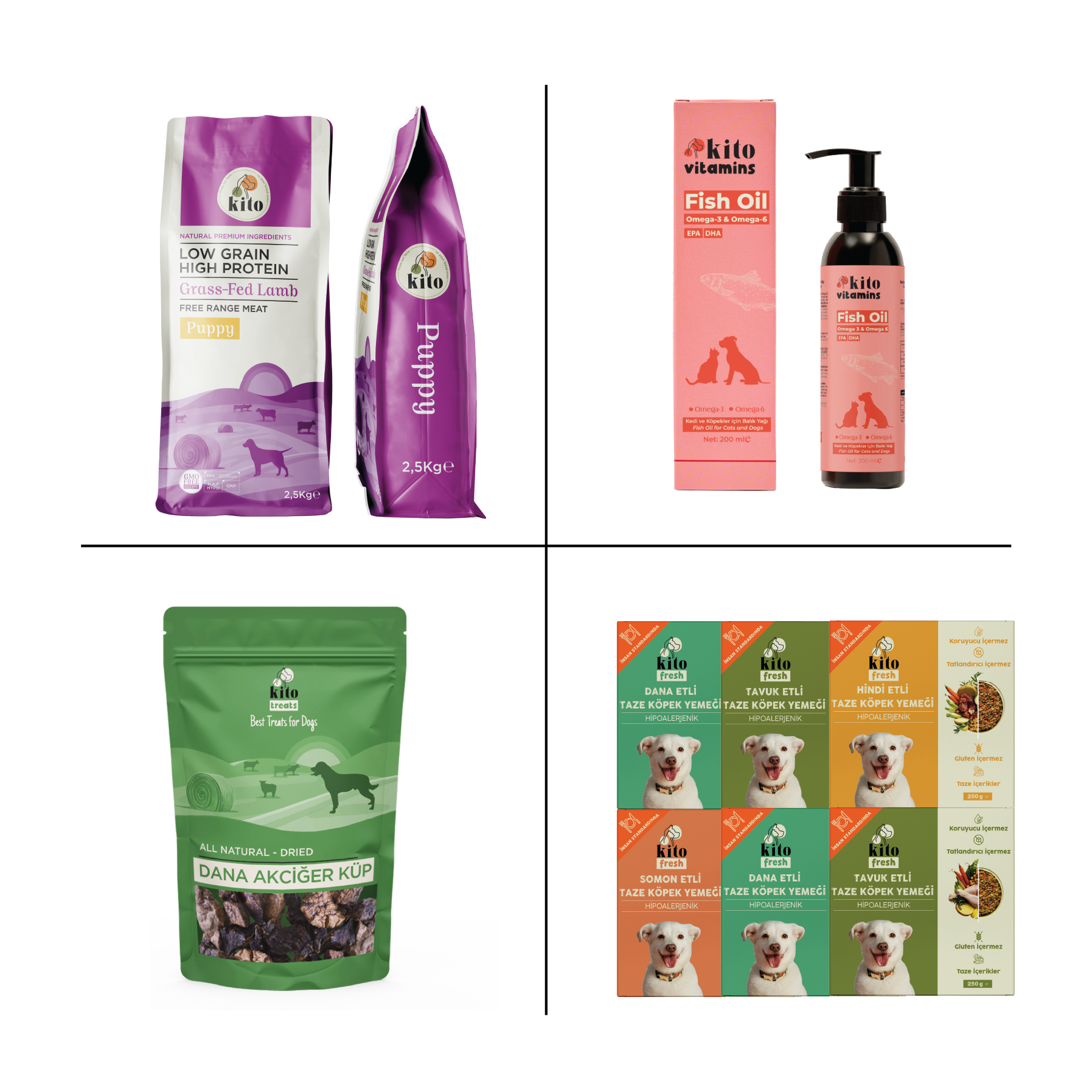 Kito puppy food, enriched with the natural flavor of livestock raised in the natural environment of Karkas Farm, is the most delicious way to meet the nutritional needs of our little friends.