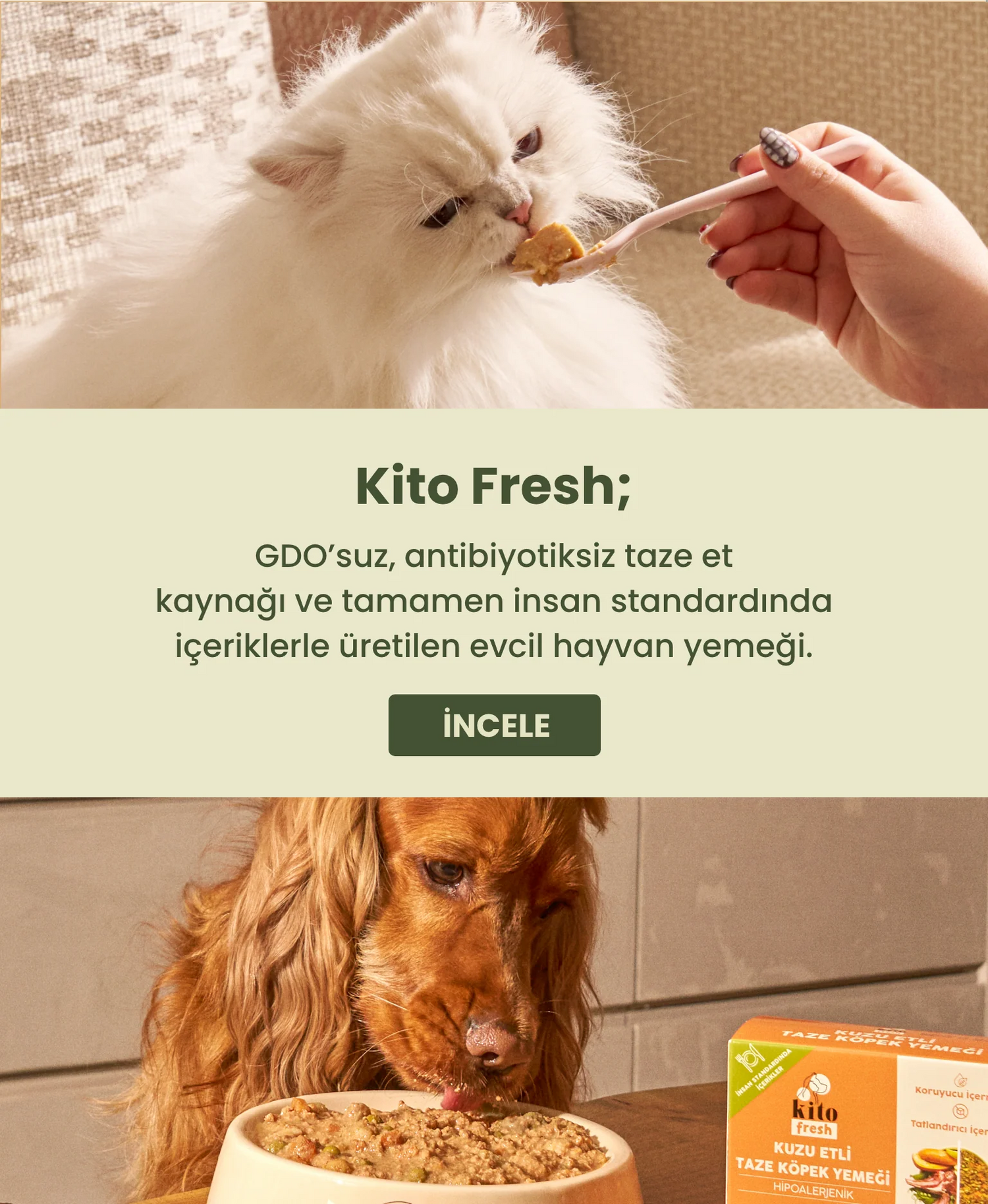 Evcil hayvan diyetine taze besinler eklenmesi, obezite, mide ve deri hastalıklarına yakalanma riskini azaltmakta ve dostlarımızın yaşam sürelerini potansiyel olarak uzatabilmektedir. Taze ve katkısız içeriğiyle bağışıklığı destekleyen Kito Fresh, öğünleri hem daha besleyici hem de lezzetli hale getirir.