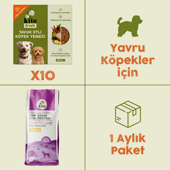 10 Adet Kito Fresh Tavuk Etli Köpek Yemeği %100 Taze İçerikli Mama + 2,5 kg Yavru Köpek Maması
