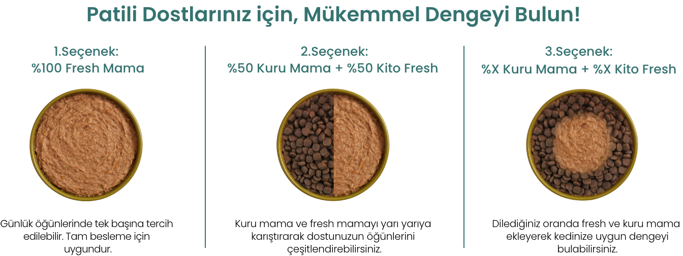 Kito Fresh mamaları hassas cilt yapısına ve sindirim sistemine sahip patili dostlar için, alerji ve hassasiyetleri göz önünde bulundurarak, sağlıklı beslenme programlarına uygun şekilde hazırlıyoruz.