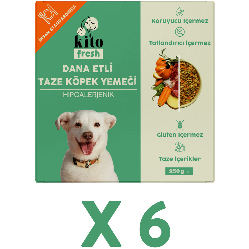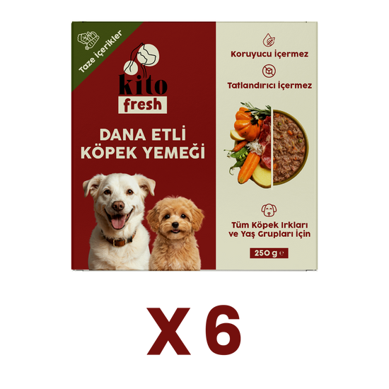 6 Adet Kito Fresh Dana Etli Köpek Yemeği %100 Taze İçerikli Mama (1,5 KG)