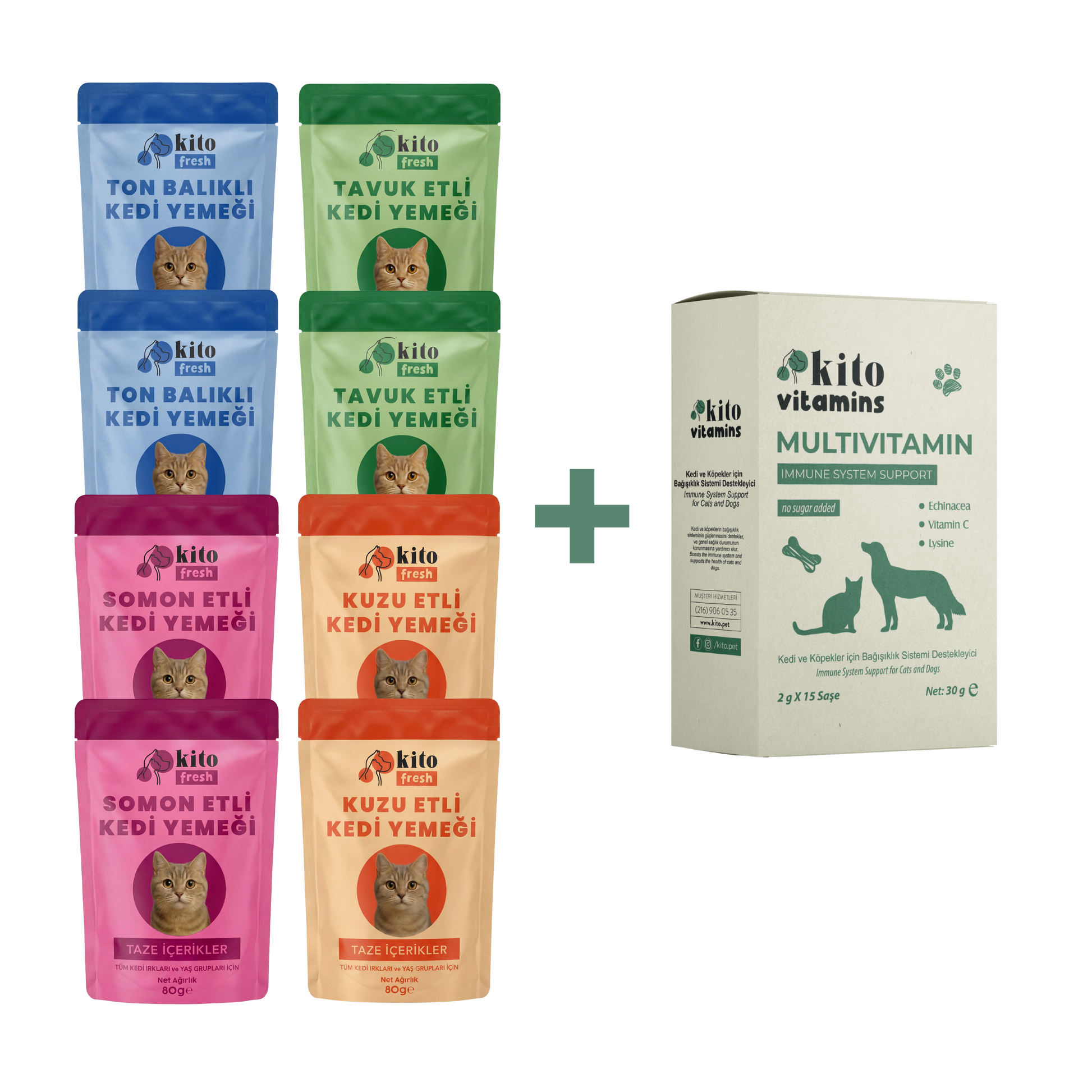 Kito Multivitamin Bağışıklık Sistemi Destekleyici + Kito Fresh Kediler için %100 Taze İçerikli Mama Tanışma Paketi