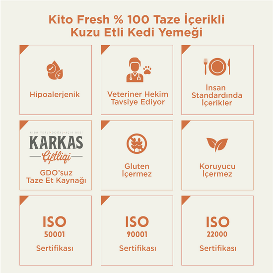 Kuzu Etli Kısır Kedi Maması 2 Kg + 8 Adet Kito Fresh Kuzu Etli %100 Taze İçerikli Mama