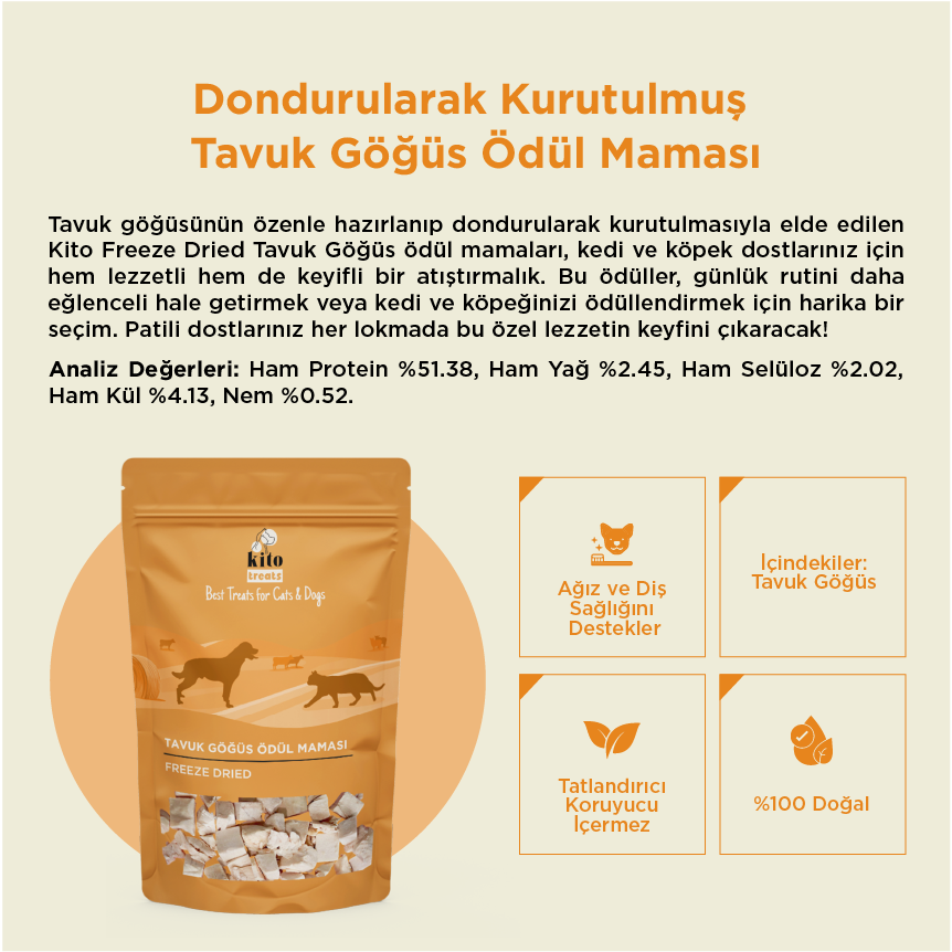 Hem Doğal Hem de Lezzetli Kito Dondurularak Kurutulmuş Tavuk Göğüs!
