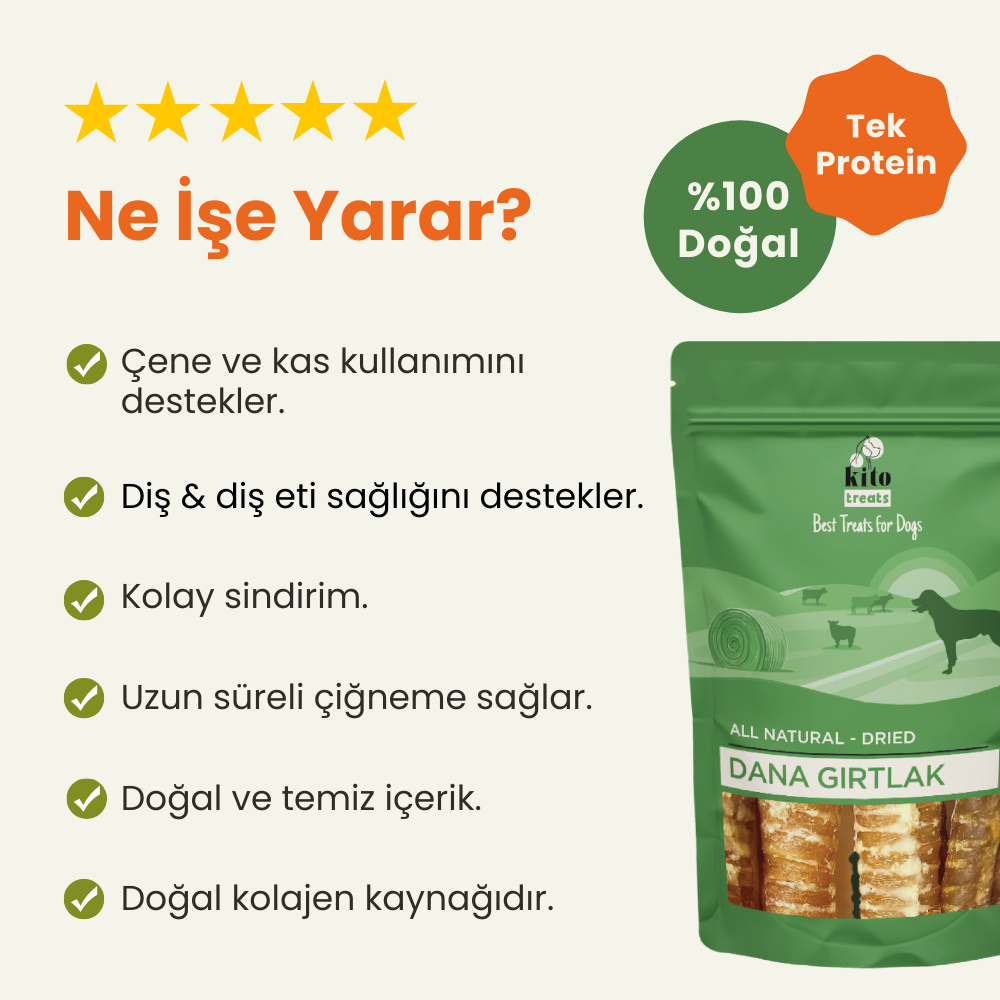 Kurutulmuş Dana Gırtlak Ödül Maması dostunuzun ihtiyaç duyduğu enerjiyi sağlar. Veteriner hekimler ve beslenme uzmanları tarafından onaylanan dana gırtlaklarının her biri dostlarınızın ağız ve diş sağlığını da desteklemeye yardımcı olur. Çiğneme hareketleriyle dişlerin tartarlardan arınmasına yardımcı olur. Siz de evcil hayvanınız için sağlıklı ve lezzetli bir ikram arayışındaysanız Kito Kurutulmuş Dana Gırtlak Ödül Maması ile eğlence saatlerini tam bir keyif anına dönüştürebilirsiniz!