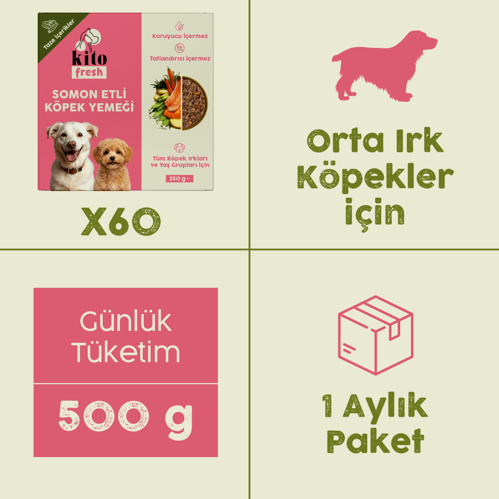 Somon Etli Kito Fresh x60 (Orta Irk Köpekler için Aylık Kito Fresh Paketi)