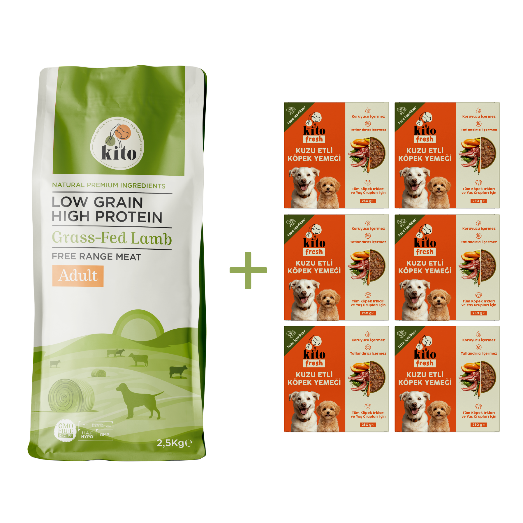 Kuzu Etli Yetişkin Köpek Maması 2,5 Kg + 6 Adet Kito Fresh Kuzu Etli %100 Taze İçerikli Mama