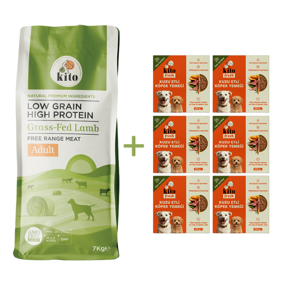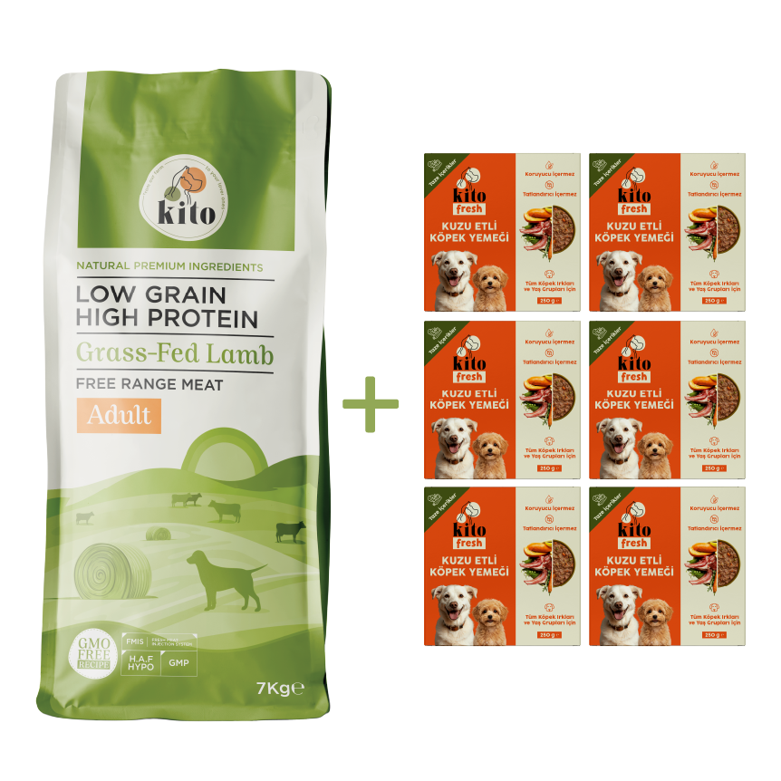 Kuzu Etli Yetişkin Köpek Maması 7 Kg + 6 Adet Kito Fresh Kuzu Etli %100 Taze İçerikli Mama