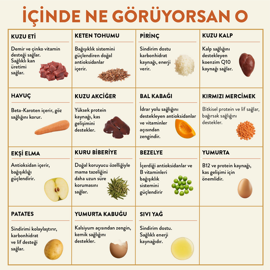 Bu kombinasyon sayesinde öğünler sadece doyurucu değil, aynı zamanda patili dostunuzun uzun vadeli sağlığını destekleyen bütüncül bir beslenme deneyimine dönüşür.