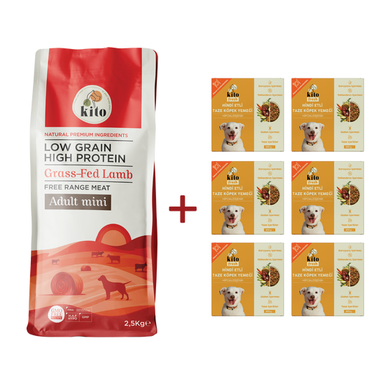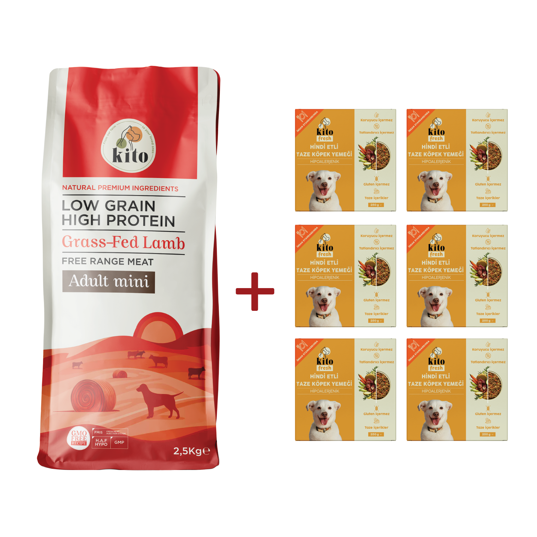 Yetişkin Mini Irk Köpek Maması 2.5 KG + Hindi Etli Köpek Kito Fresh X 6