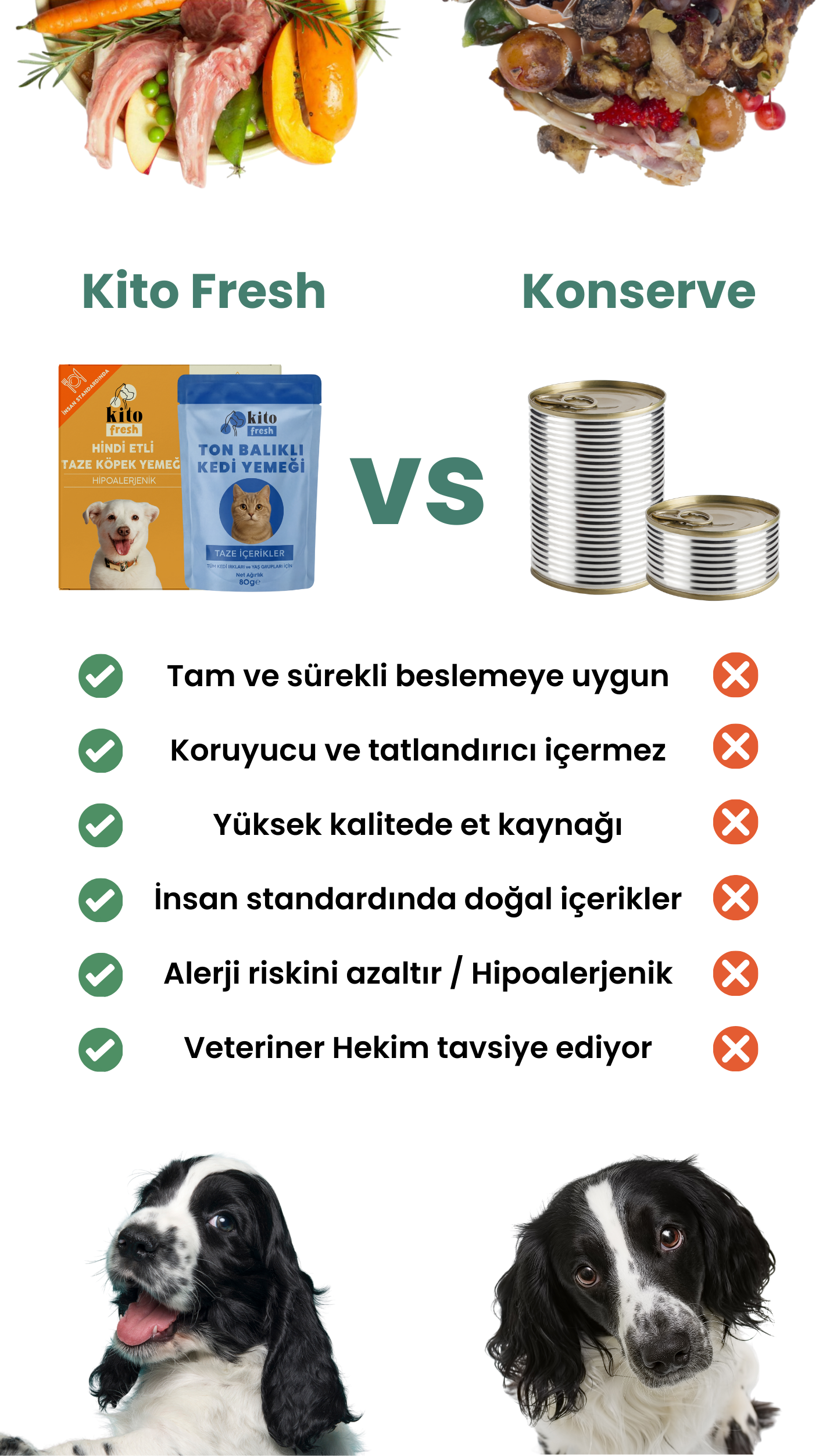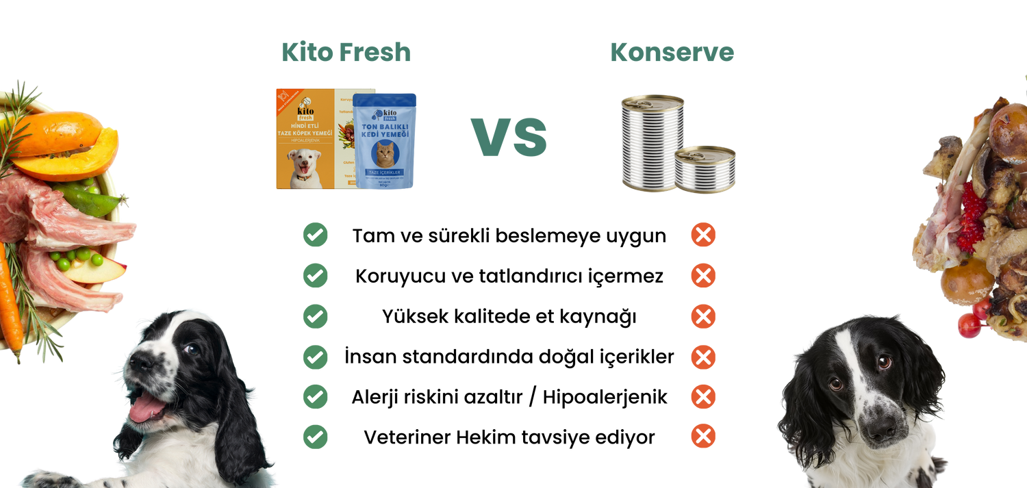 Tamamen insan standardında ve taze içeriklerle hazırlanan evcil hayvan yemeği.
