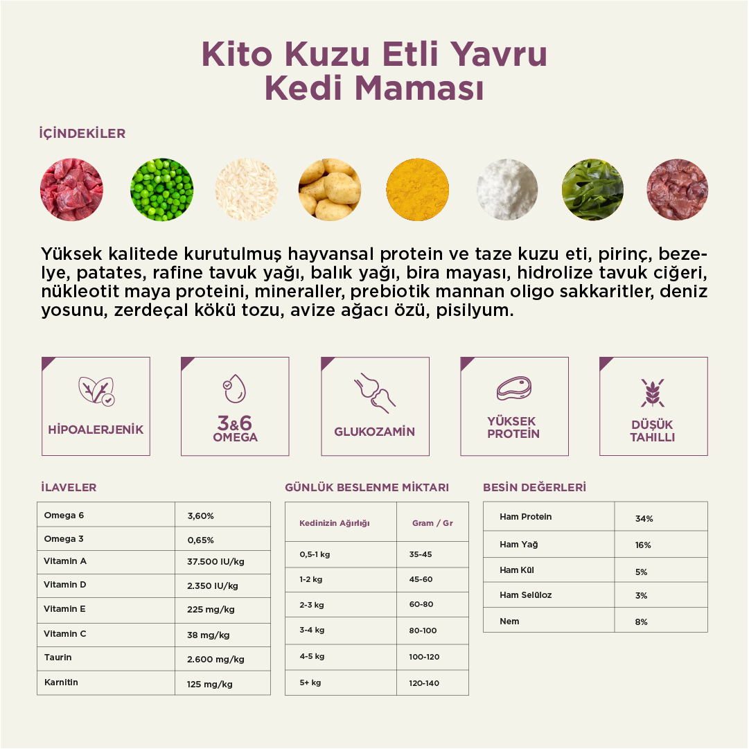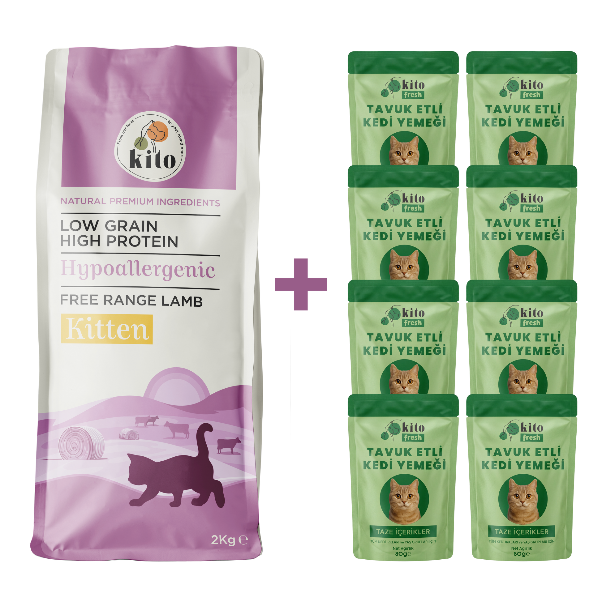 Kuzu Etli Yavru Kedi Maması 2 Kg + 8 Adet Kito Fresh Tavuk Etli %100 Taze İçerikli Mama