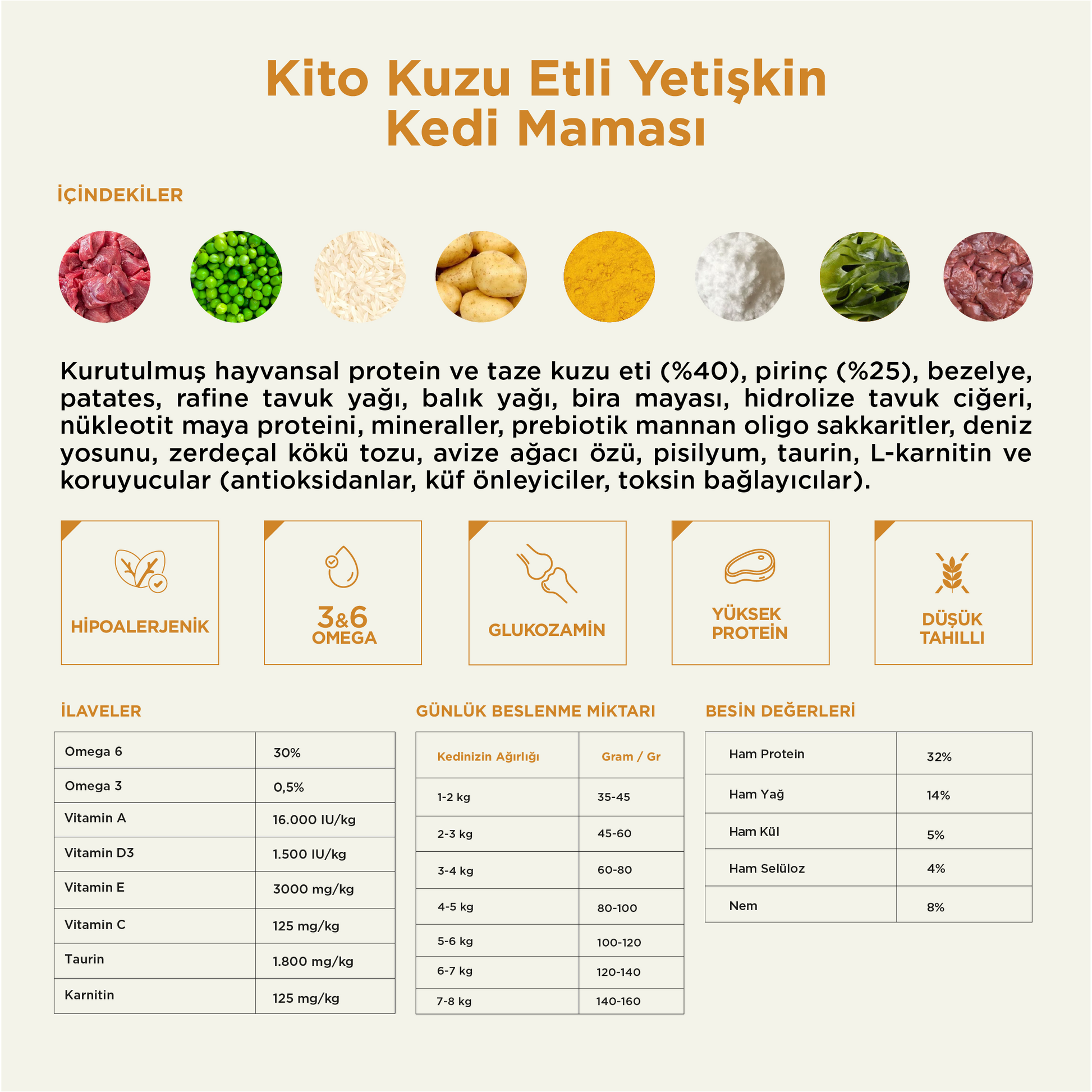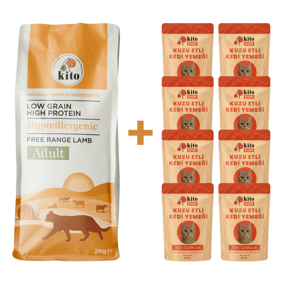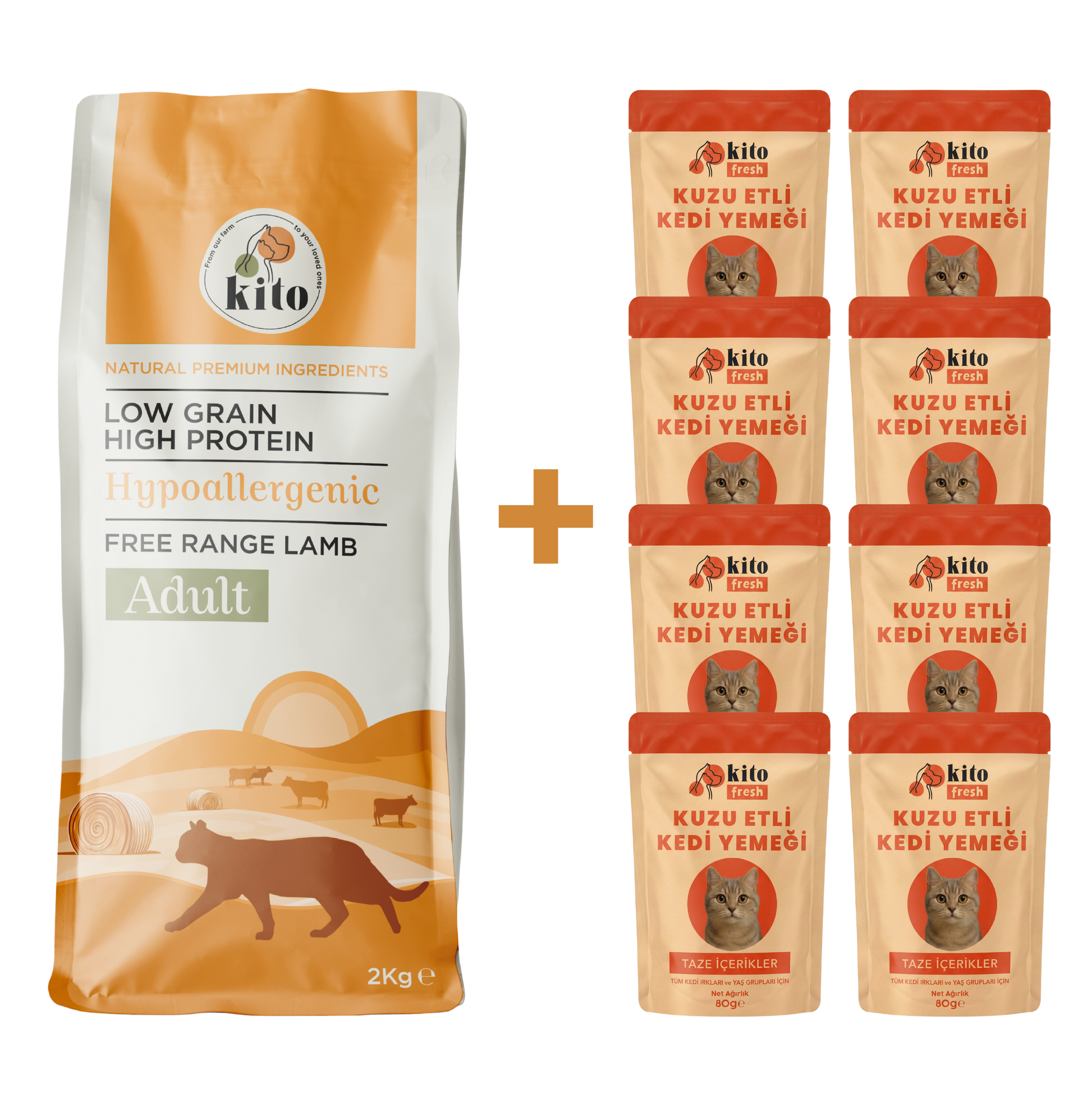 Kuzu Etli Yetişkin Kedi Maması 2 Kg + 8 Adet Kito Fresh Kuzu Etli %100 Taze İçerikli Mama