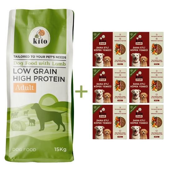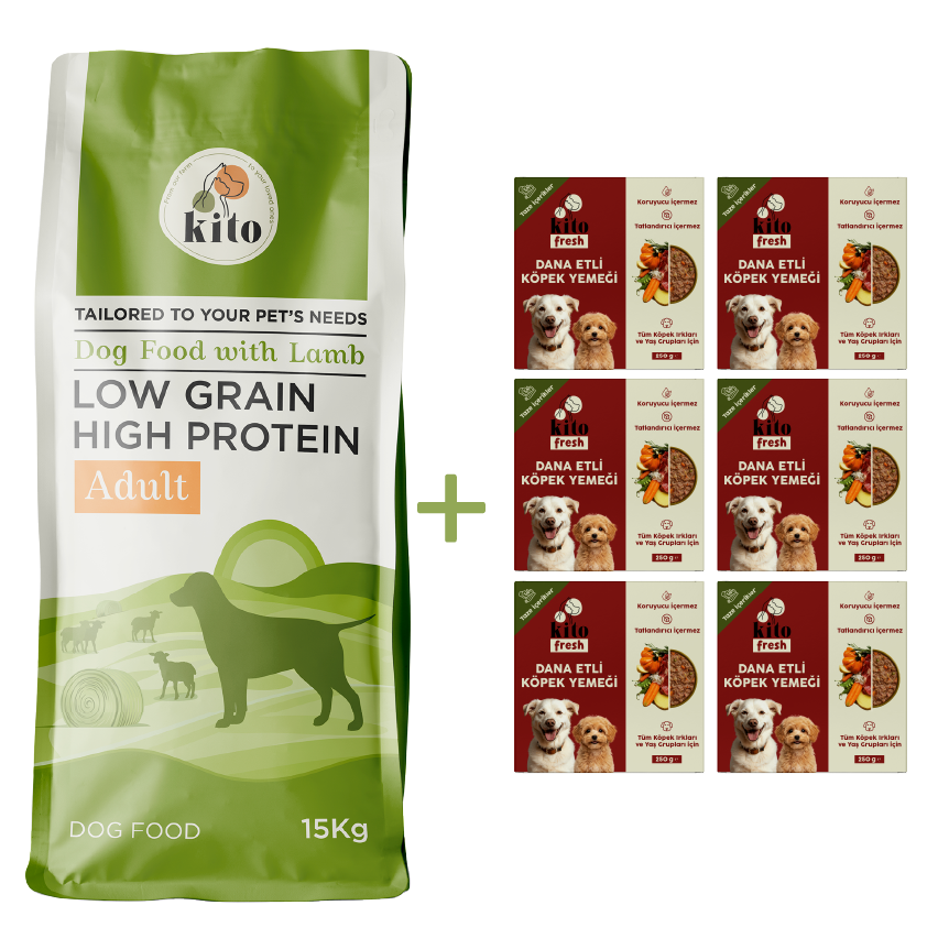 Kuzu Etli Yetişkin Köpek Maması 15 Kg + 6 Adet Kito Fresh Dana Etli %100 Taze İçerikli Mama